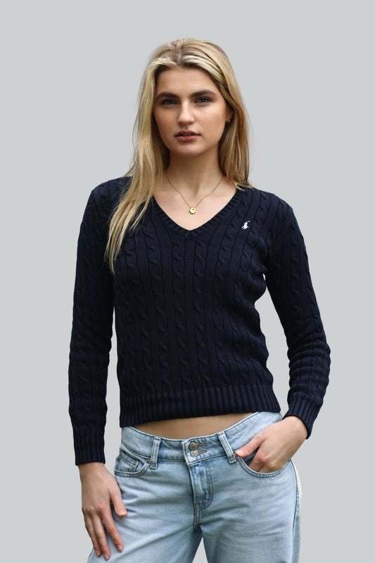 Vintage Ralph Lauren Cable Knit Jumper - V Neck